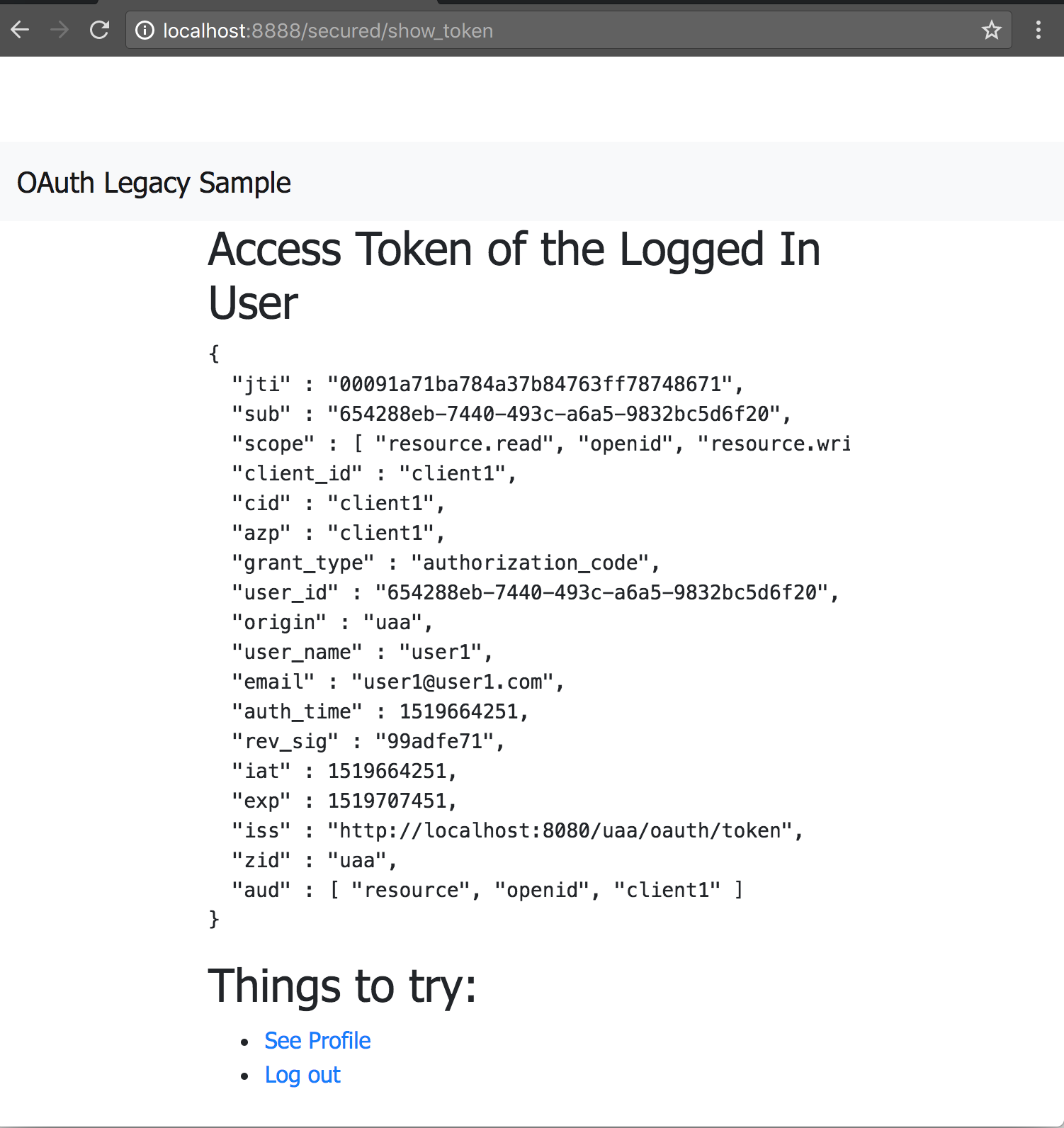 Accessing resource with token.